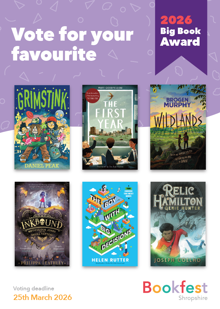 We are very excited to reveal the six books shortlisted for Big Book Award 2026. Each of them has been enthusiastically recommended by Year 5 and 6 pupils in Shropshire primary schools. Between them, they spent 8 weeks reading more than 70 titles nominated for the Award by leading UK publishers – all published in