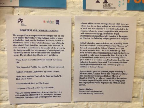 As their Young Arts Project for 2018, the The Arts Society, Shrewsbury Branch, with the support of Shrewsbury Museum & Art Gallery, supported the art competition for schools taking part in the BIG Book Award 2018 project.