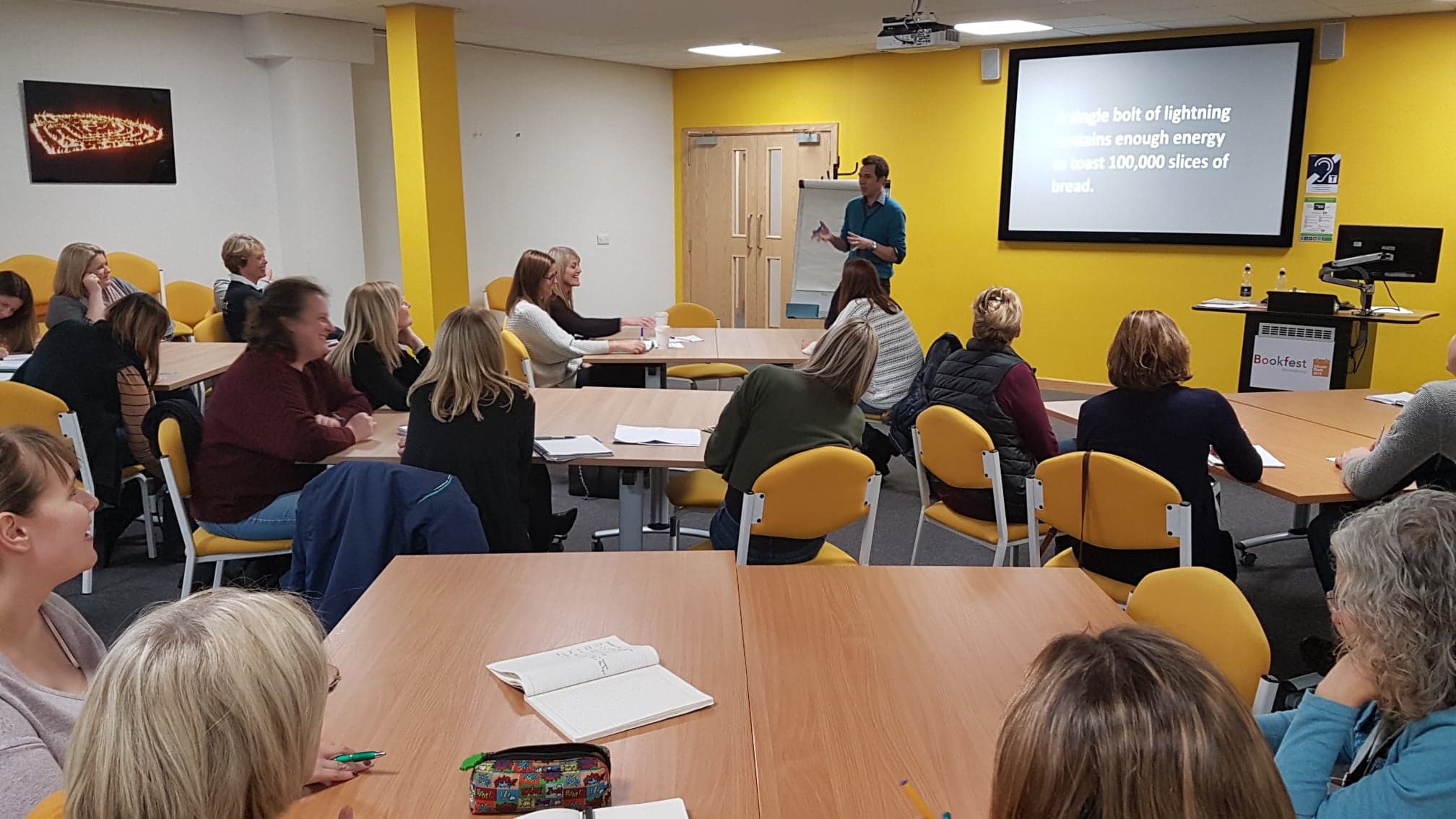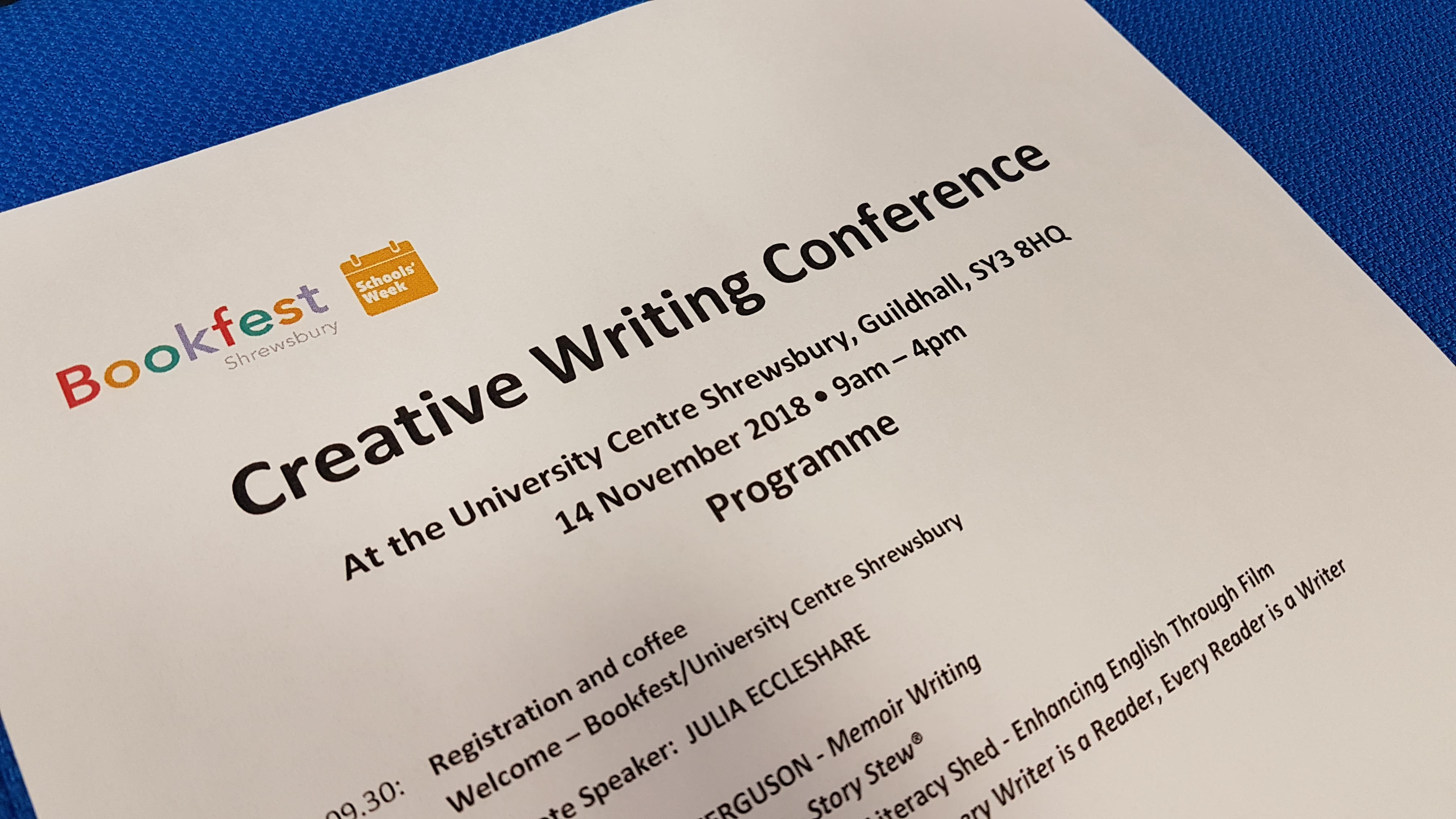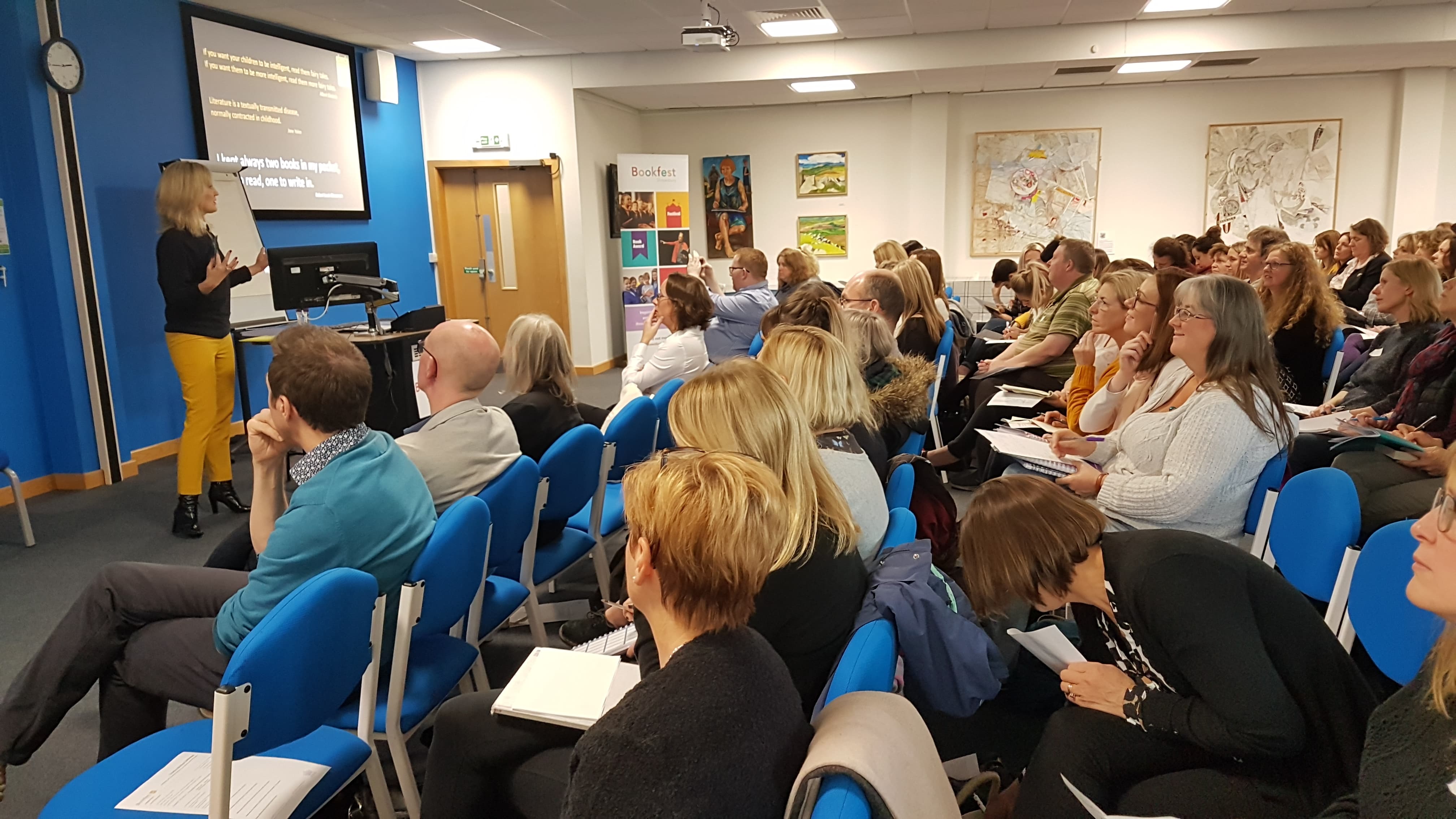 After lunch, delegates again moved to attend one of the four workshops as listed above – this system offered delegates the opportunity to pick and choose from the programme to suit their needs whilst maximising the opportunity to discover new and original ideas for developing their creative writing skills. When the conference gathered together again afterwards, Bookfest explained the format and timeline for the Schools’ Week 2019 project – the first step in the project being this Conference.