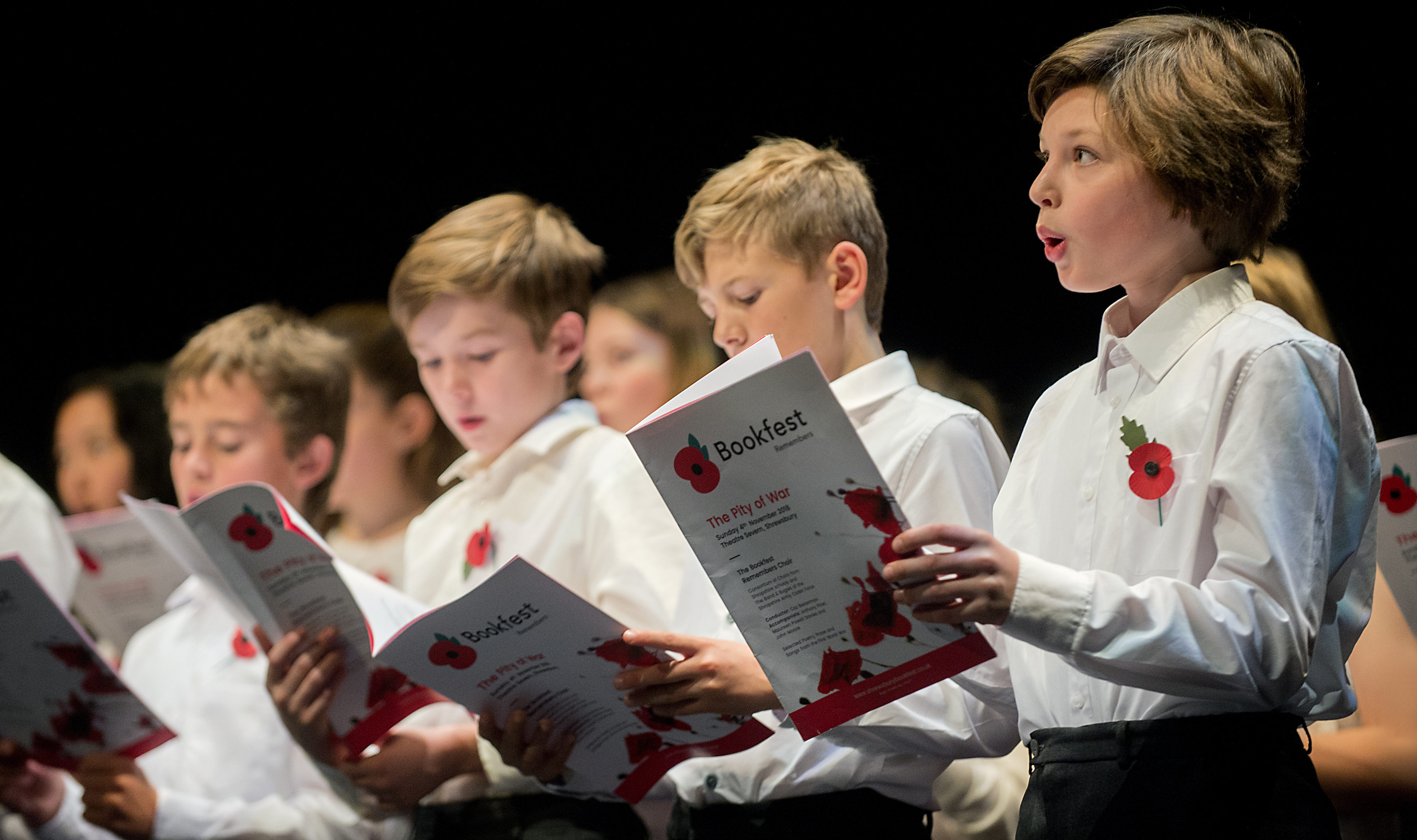 The Bookfest Choir, conducted by Caz Besterman, opened the evening, together with the band and bugles of the Shropshire Army Cadet Force. The Choir, formed from several school choirs from across the county, were superb. “Anthem for doomed youth” and “The parable of the old man and the young”, two of Owen’s finest works, received exemplary performances. Ms. Besterman’s settings caught the essence of the poems perfectly and John Moore at the piano was a sympathetic accompanist. The melancholy mood was heightened by some fine cello and violin playing, emphasising the conductor-composer’s skill in writing for a large, talented and tightly disciplined youthful choir. There were also several solo performances by young instrumentalists and some beautiful singing of music dating from the early twentieth century as well as readings of “Strange Meeting” and prose writings by Wilfred Owen. The choice of “Tribute to the Fallen” by Mustafa Kemal Ataturk was inspired; the words are deeply moving and were performed beautifully.